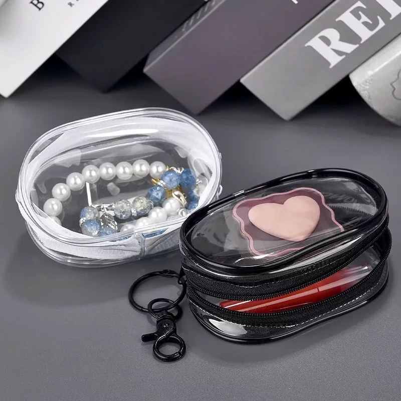 Genomskinlig resenecessär för kosmetika och sminkförvaring med dragkedja