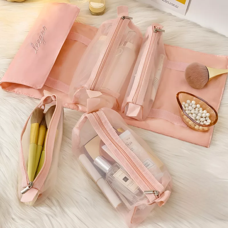 De blixtlåsförsedda påsarna knäpper av och på snabbt, så att du kan packa bara det du behöver. Det är bra för att separera hudvård, hårvård och smink essentials.