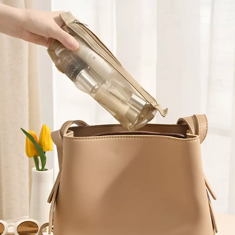 Genomskinlig resenecessär för kosmetika och sminkförvaring med dragkedja
