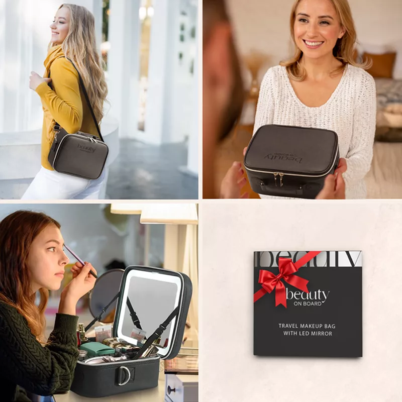 Säg adjö till oreda i din skönhetsrutin med denna innovativa Beauty on Board Makeup & Toiletry Bag. Det är den ultimata lösningen för att hålla dina nödvändigheter snygga och tillgängliga när du behöver dem. Med en inbyggd LED-spegel är touch-ups enkla vare sig hemma eller på språng. Upplev bekvämligheten med anpassningsbara sektioner som låter dina kosmetika förbli perfekt arrangerade. Hitta vad du behöver på nolltid och njut av en sömlös applikation varje dag.