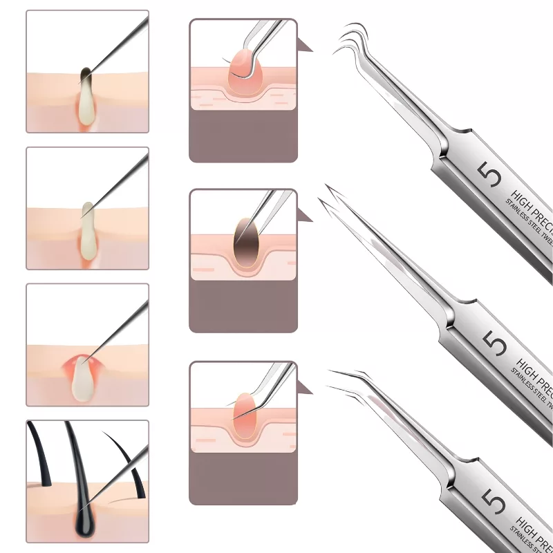 Våra pormaskpincetter når djupt för att rensa bort orenheter och förbättra hudens hy. De hjälper till att förhindra framtida utbrott genom att hålla porerna fria från skräp. Detta kit är ett smart tillskott till varje hudvårdsrutin.