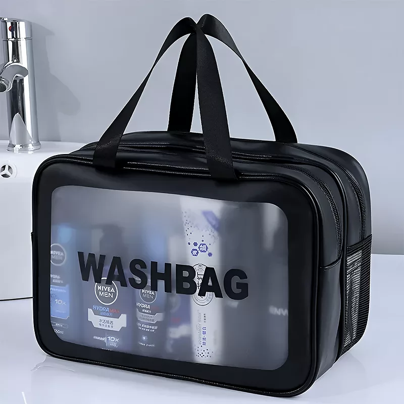 Denna genomskinliga kosmetikväska hjälper dig att packa smartare och snabbare. Kompakt men rymlig, den håller allt ditt smink på ett ställe. Den är perfekt för resor, pendling eller daglig användning. Säg adjö till att glömma föremål och röriga spill i din väska.